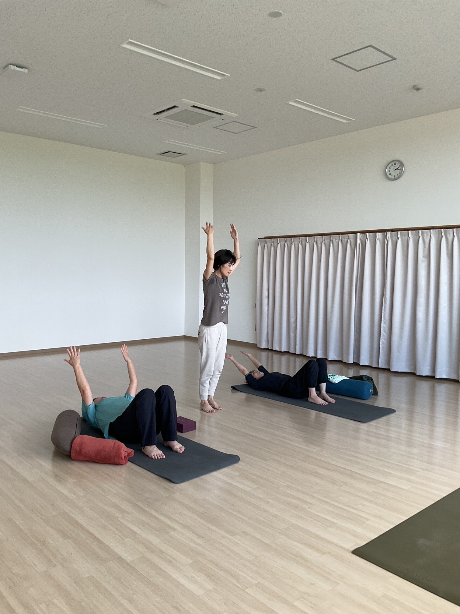 ヨガの基本的なポーズや呼吸法を丁寧に行います